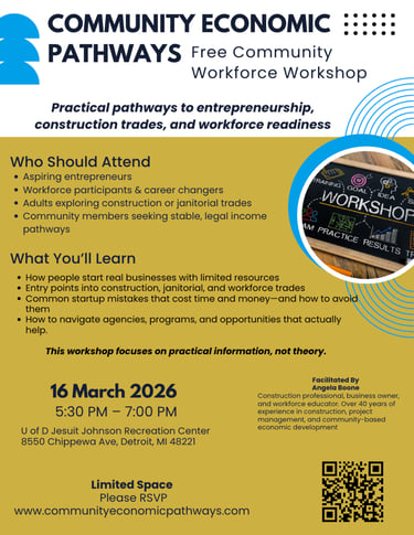 I want to sincerely thank Fox 2 Detroit for the opportunity to come on and talk about the Community Economic Pathways Workshop on March 9th. It meant a lot to be able to share how we are helping people learn how to start and grow businesses in construction, final cleaning, janitorial services, and other service trades. Conversations like this matter because they show that business ownership is possible when people are given the right information and guidance. I truly appreciate the opportunity to highlight this work. Click the link to watch the full segment on The Noon on Fox 2 News and see the entire conversation.